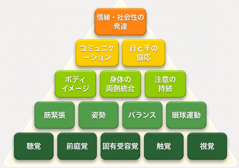 もし基礎部分が不安定な状態にあれば、 上層部分まで揺らいでしまい、円滑な発達の妨げとなってしまいます。